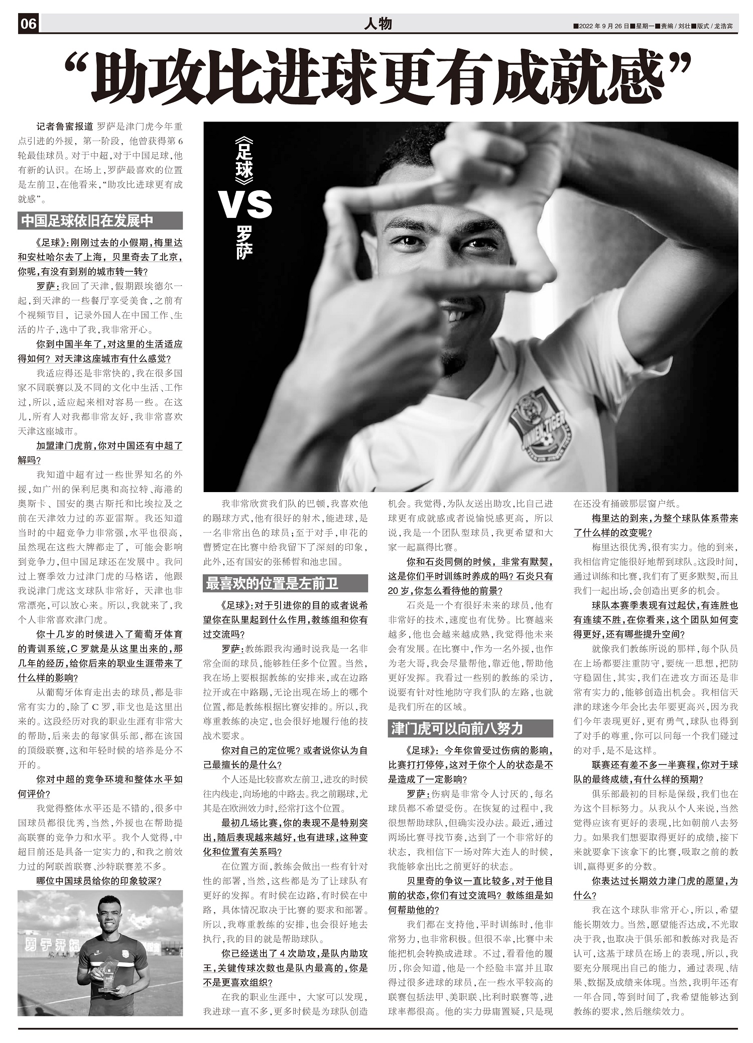 《足球》VS罗萨 “助攻比进球更有成就感”