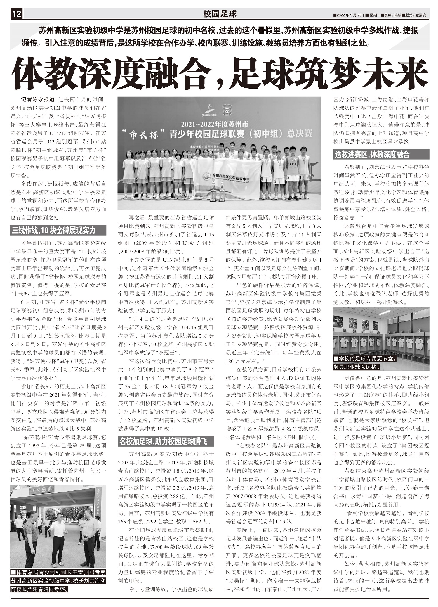 苏州高新区实验初级中学是苏州校园足球的初中名校,过去的这个暑假里,苏州高新区实验初级中学多线作战,捷...