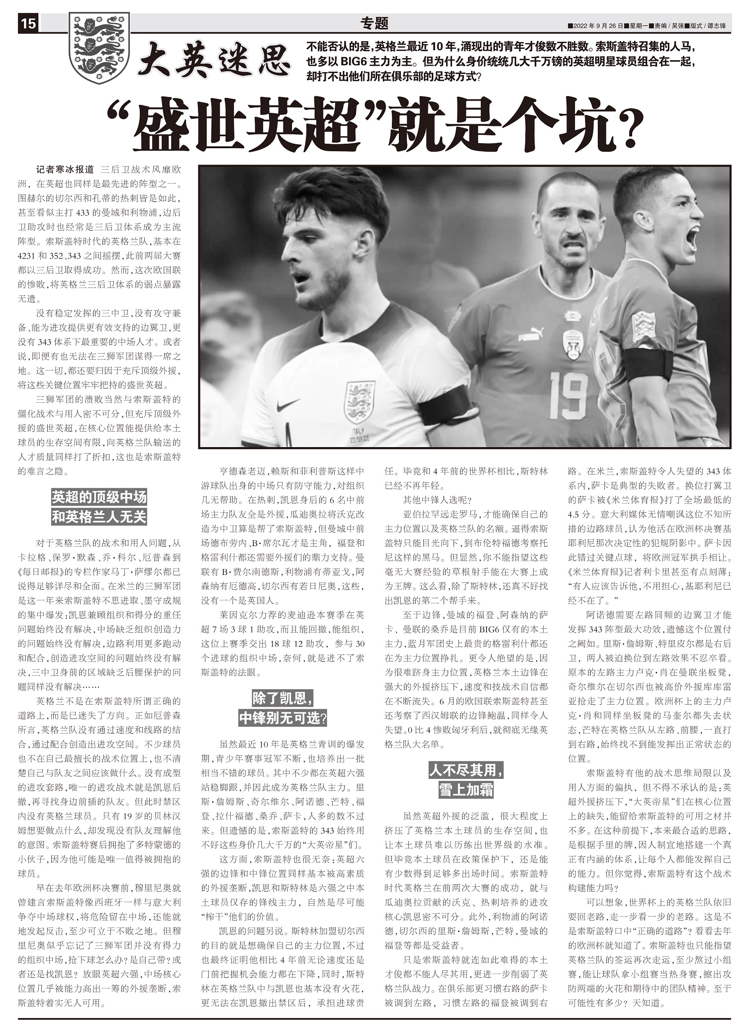 大英迷思不能否认的是,英格兰最近10年,涌现出的青年才俊数不胜数。索斯盖特召集的人马,也多以BIG6...