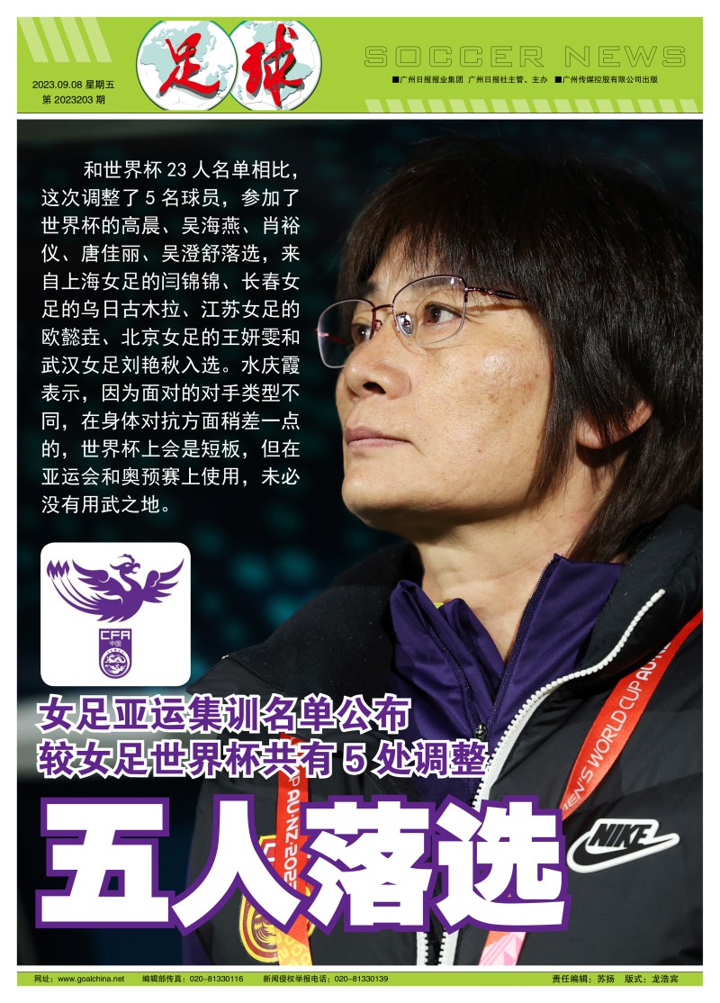 女足公布名单备战亚运:世界杯五将落选