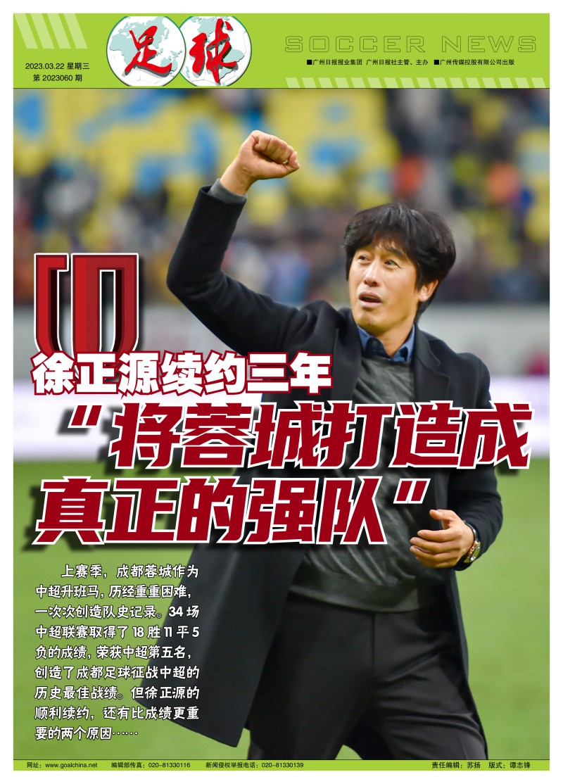 徐正源与蓉城续约三年,这两点比战绩更重要