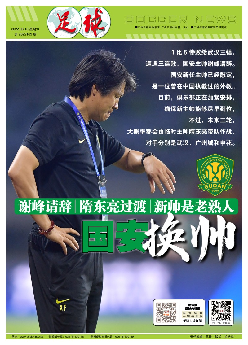 国安换帅:谢峰请辞,隋东亮过渡,新帅是老熟人